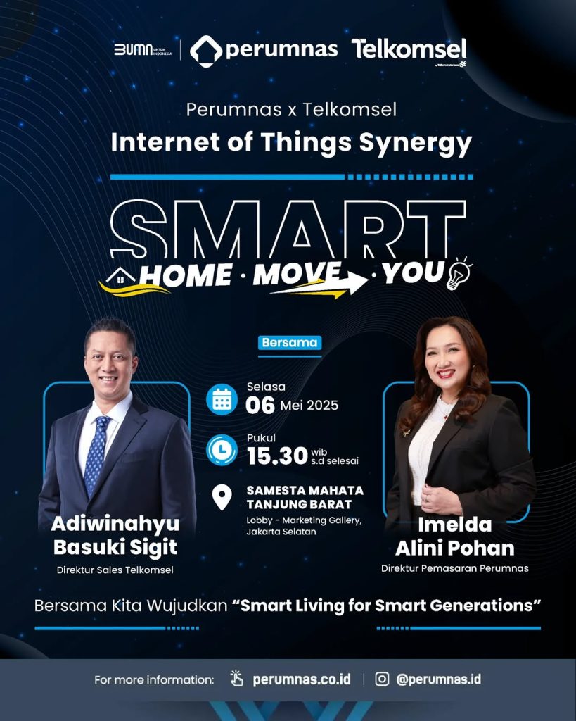 Perumnas x Telkomsel, Internet of Things Synergy — kolaborasi menuju: 🏠 Smart Home (Hunian modern dengan teknologi yang memudahkan hidup)🚀 Smart Move (Langkah cerdas untuk masa depan lebih baik)🧠 Smart You (Tumbuh bersama hunian yang memahami kebutuhanmu) 🗓️ Selasa, 06 Mei 2025🕒 Pukul 15.30 WIB s.d selesai📍 Samesta Mahata Tanjung Barat – Lobby Marketing Gallery, […]