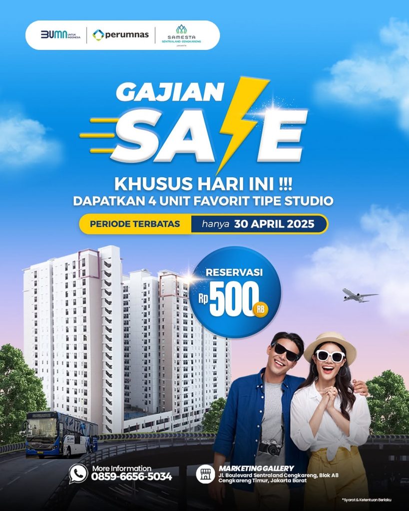 Gajian Sale!! Khusus Hari Ini! Dapatkan 4 Unit Favorit Tipe Studio