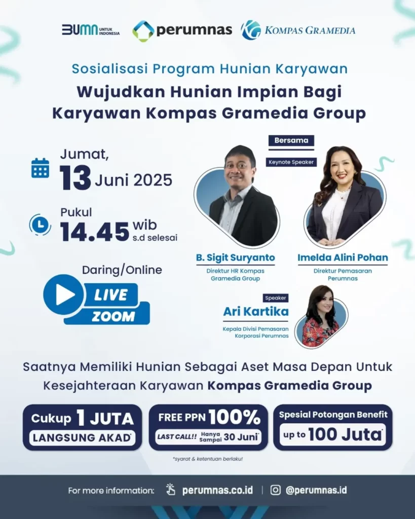 🧭 Sosialisasi Program Hunian Karyawan: Wujudkan Hunian Impian Bagi Karyawan Kompas Gramedia Group 🏡🏢💫 Sebagai bagian dari upaya mendukung kesejahteraan karyawan Kompas Gramedia Group, akan diselenggarakan kegiatan Sosialisasi Program Hunian Karyawan antara Perumnas & Kompas Gramedia Group. Program ini dirancang untuk memberikan kemudahan akses memiliki rumah bagi para karyawan melalui program Gampang Punya Rumah Perumnas, […]