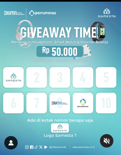 Caranya gampang. Dari postingan diatas. Ada di kotak nomor berapa logo Samesta !!! Jangan sampe ada yang terlewat ya… tulis jawaban #SobatPerumnas di kolom komentar. Like 5 postingan di akun IG @infoperumnas dan mention 3 teman kamu untuk ikutan giveaway ini.