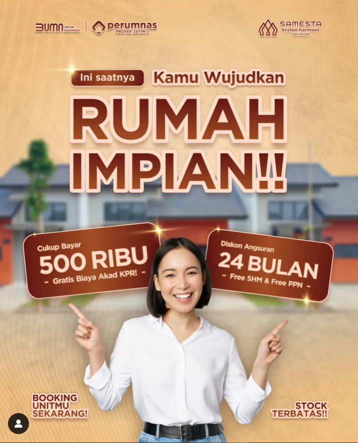 Yuk wujudkan hunian baru di Perumnas Samesta Kraton Harmoni Pasuruan yang bikin nyaman keluarga mu😍🥰