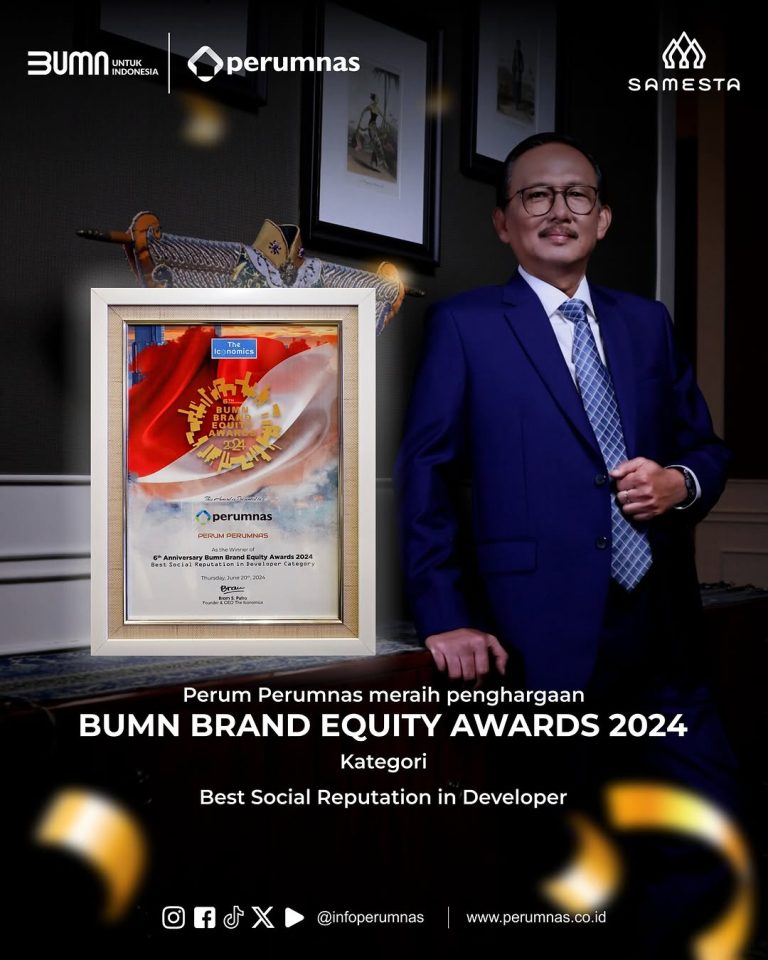 Selamat kepada keluarga besar Perum Perumnas atas pencapaian luar biasa sebagai pemenang Kategori Best Social Reputation in Developer dalam The Economics 6th Brand Equity Awards 2024🌟